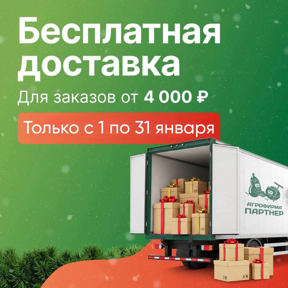 ! Друзья, отличные новости под занавес года — в январе вас ждёт выгодная акция в интернет-магазине! ✨ Бесплатная доставка от 4.000₽ 📆 С 1 по 31 января При сумме заказа от 4.000 рублей доставка до пункта выдачи заказов — бесплатно. Почему стоит запланировать покупку: — экономия на доставке, — можно спокойно собрать корзину без спешки, — отличная возможность подготовиться к новому сезону, — акция действует весь январь. ❗️Важно: Акция действует только на доставку до пункта выдачи заказов и распространяется на заказы, оплаченные в период проведения акции. 📌 Планируйте покупки заранее и начинайте год с выгодных заказов в интернет-магазине Агрофирмы Партнер