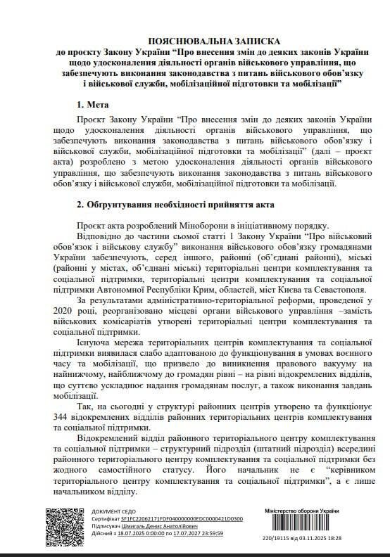 Согласно проекту, их предлагается наделить теми же полномочиями, что и городские ТЦК. То есть, вести учет военнообязанных и проводить мобилизационные мероприятия. Судя по пояснительной записки, законопроект предусматривает превращение ныне действующих обособленных отделений районных ТЦК (они создаются на уровне объединенных территориальных громад и работают, в основном, в сельской местности) в полноценные ТЦК. «Это позволит оптимизировать процессы мобилизации и привлечения к ответственности нарушителей, разгрузить руководителей районных территориальных центров комплектования и социальной поддержки, повысить эффективность деятельности таких центров и укрепить их институциональный потенциал», - говорится в пояснительной записке к законопроекту, подписанной министром обороны Шмыгалем. Напомним, что мобилизация в селах и так активно идет с начала войны. При этом ещё более жестко, чем в городах, так как там труднее от военкомов укрыться. СМИ писали, что из-за этого некоторые села букваль