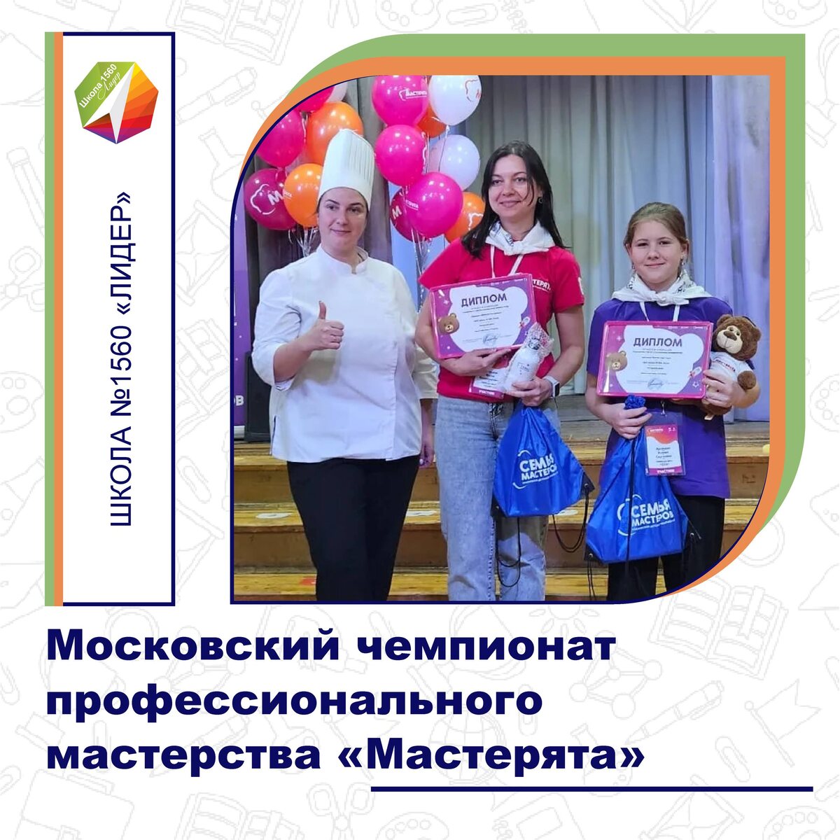 В Московском детском чемпионате профессионального мастерства «Мастерята» предусмотрена семейная категория — «Семья мастеров», где школьники участвуют в конкурсе вместе с родителями (законными представителями). В этом году нашу школу №1560 «Лидер» 🏫📚🎓 представили мама и дочь — Ирина Владимировна и Ксения, ученица 6-го класса. По итогам финальных испытаний команда была удостоена диплома в номинации «Семья мастеров. Поварское дело», продемонстрировав высокий уровень кулинарного мастерства и слаженную работу. Поздравляем Ирину Владимировну и Ксению с достойным результатом и желаем новых совместных достижений! #Школа1560Лидер #ДОНМ #ТалантливыеДетиМосквы