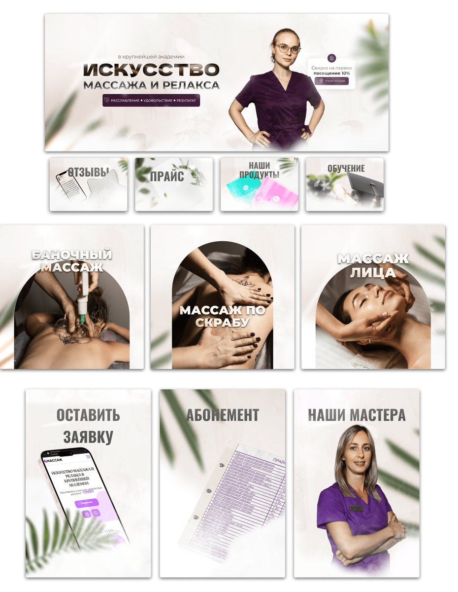 Пример дизайна сообщества ВКонтакте и плитки инстаграм для массажа
