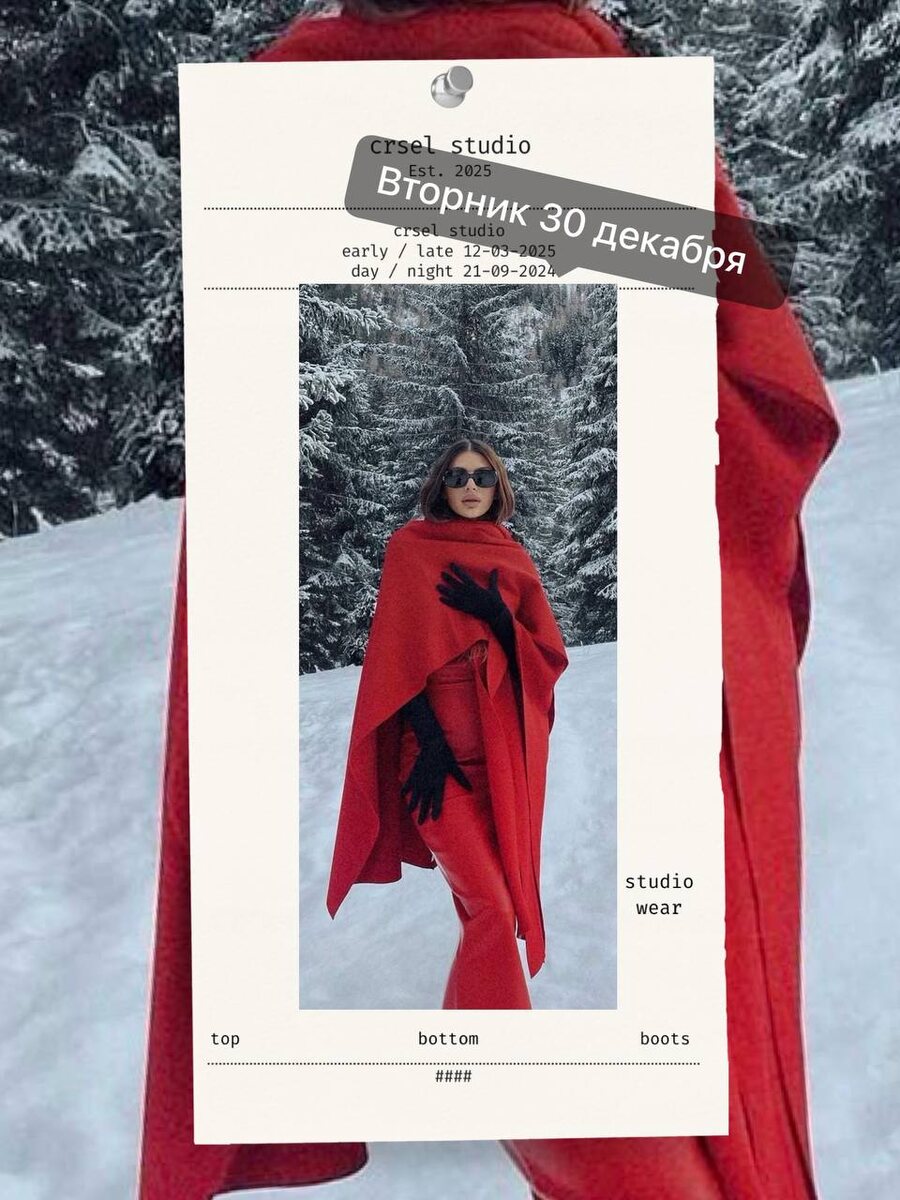 День Марса с арканом Сила и Луной в Тельце — это спокойная уверенность и внутренняя мощь без лишнего давления. Образ должен быть чувственным, устойчивым и немного «хищным», но мягко. Лучше всего зайдут оттенки красного, бордового, терракоты, шоколадного, можно добавить беж или молочный, чтобы не перегрузить. По фактурам — кожа, замша, плотный трикотаж, всё, что приятно телу и даёт ощущение опоры. Хороший вариант: базовый комплект плюс акцент — красная помада, ремень, сумка или обувь. Минимум суеты, максимум присутствия. Сегодня стиль — это не про демонстрацию силы, а про то, что её и так чувствуют.