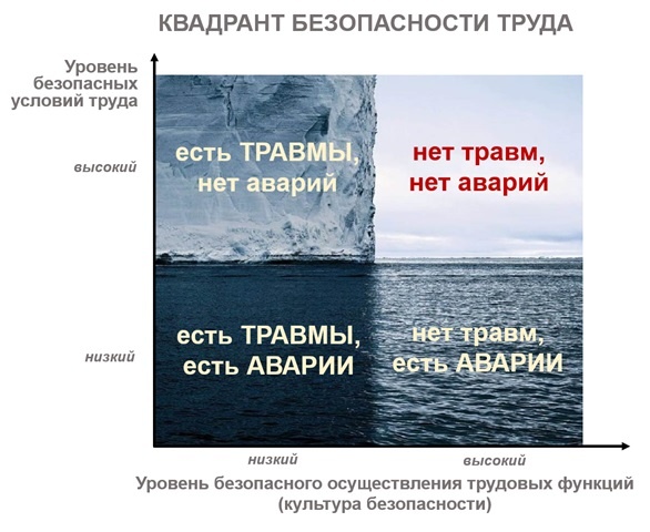 Управление этими факторами принципиально отличается друг от друга и их связь можно представить в виде квадранта безопасности труда (см. рисунок).