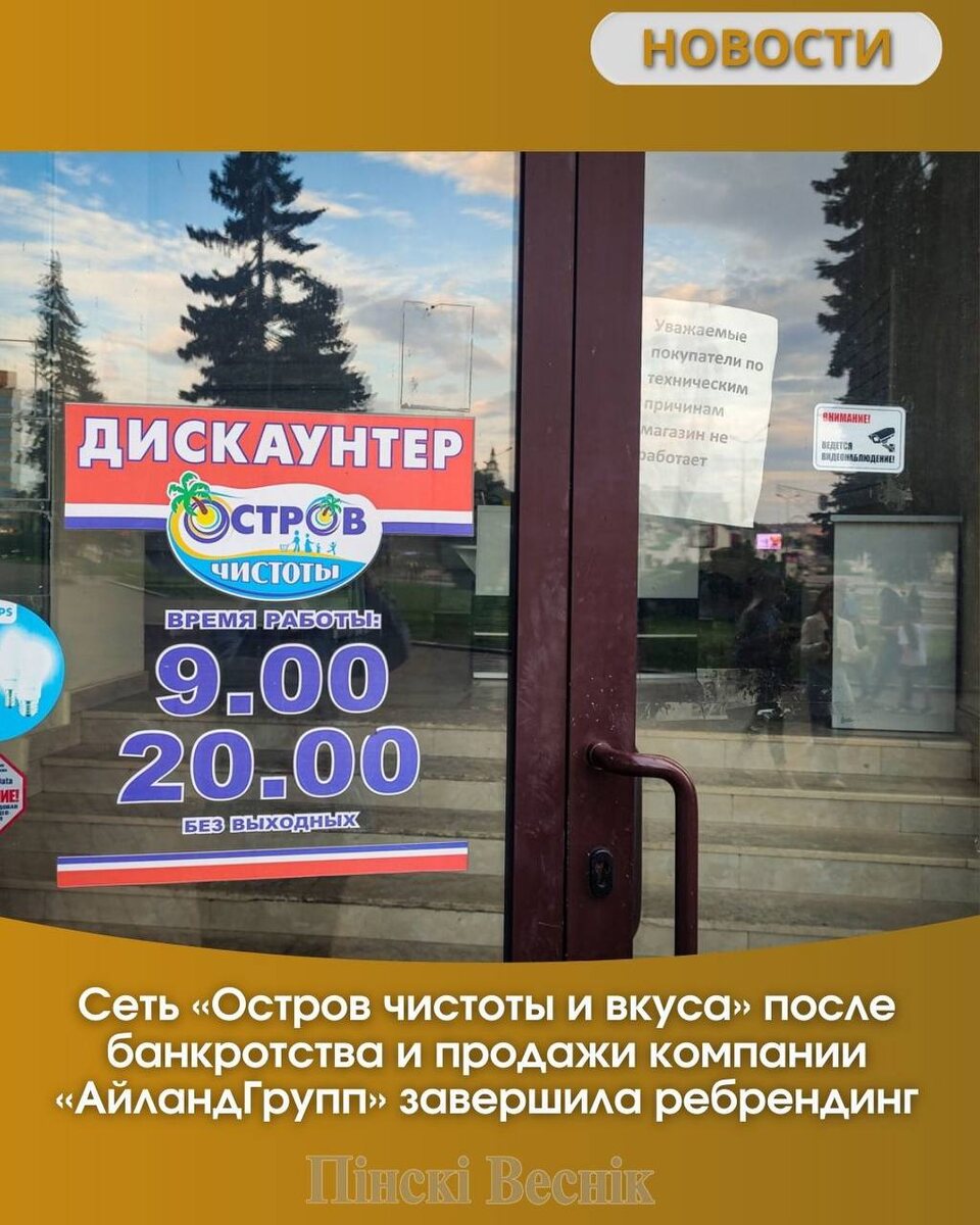 ⏩Магазины открываются под новым названием «Остров» с черно-желтым дизайном. Центром логотипа стала иволга — символ надежности и развития. ⏩Компания подчеркивает, что бизнес принадлежит белорусскому юрлицу, бенефициаром которого является резидент России. @Пинский Вестник 📱Ютуб 📱ВК 📱ИНСТАГРАМ 📱ОК 📱ФЕЙСБУК 📱ТИК ТОК Прислать новость