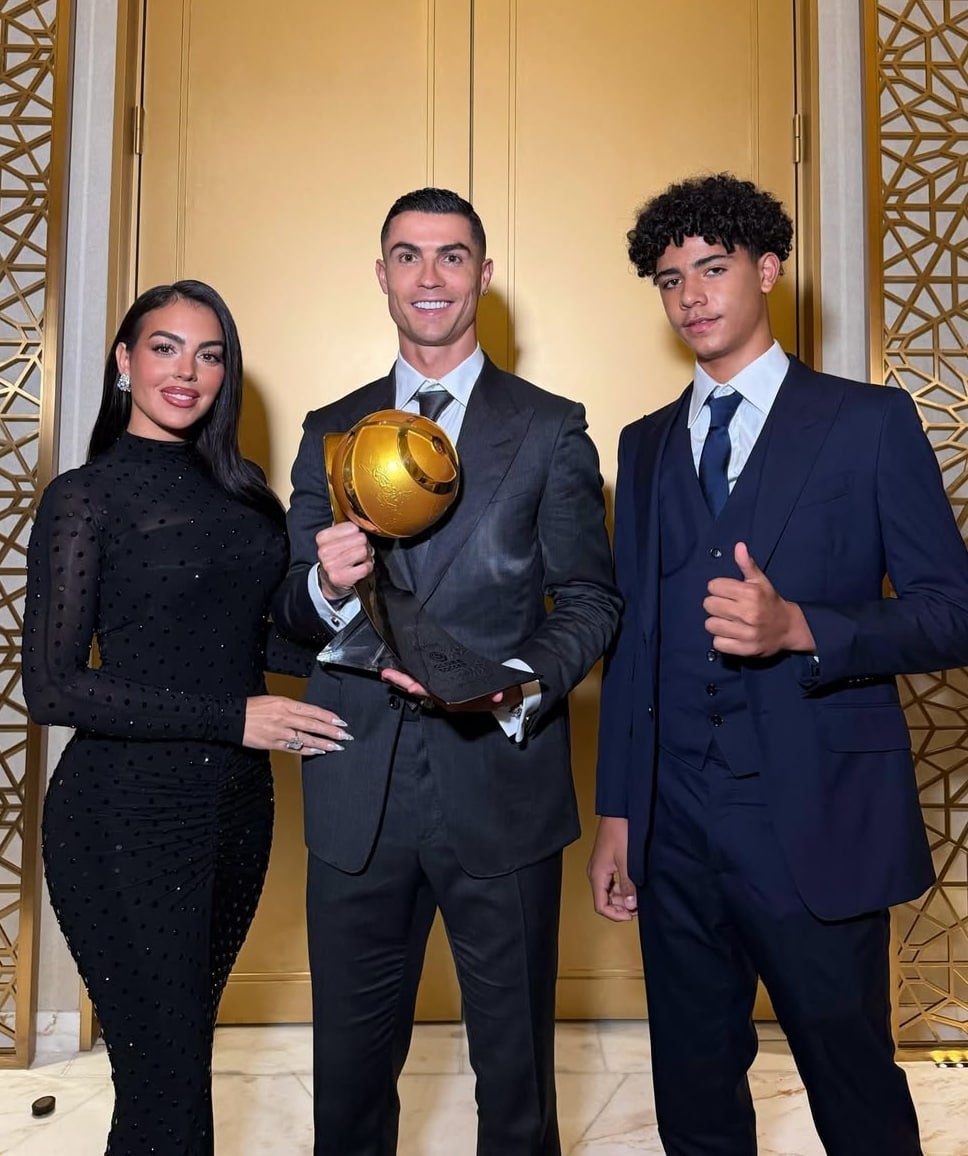 🏆 Поддержать футболиста на церемонии в Дубае пришли его возлюбленная Джорджина Родригез, сиявшая тяжёлыми бриллиантами, и старший сын — Криштиану Роналду-младший. Spletnik