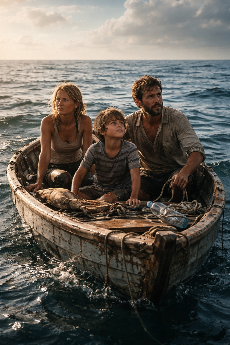Океан принял их беззвучно, словно давно ждал. Лодка качалась на длинной, ленивой волне, и каждый скрип досок казался последним признанием дерева, уставшего держаться. Солнце стояло высоко, не оставляя тени, и горизонт был одинаков со всех сторон — чистая линия, без обещаний.