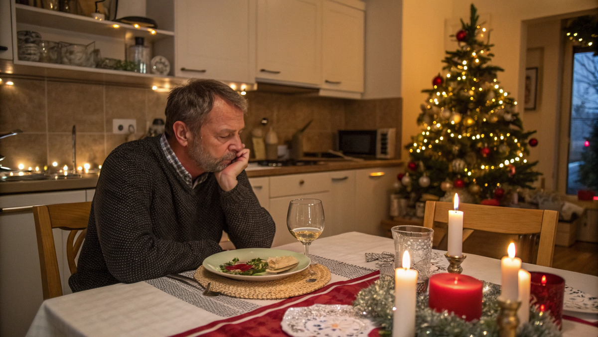 А в это время Виктор сидел один за накрытым столом и смотрел, как по телевизору артисты желают друг другу счастья.