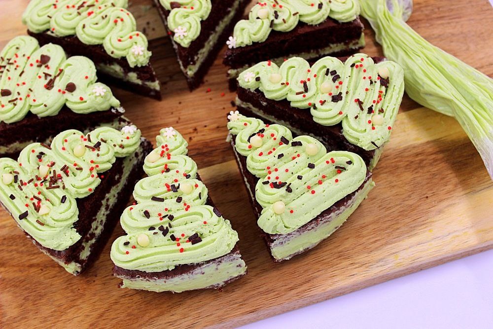 📖 Ингредиенты: · Для бисквита: · Мука пшеничная – 100 г · Сахар коричневый – 80 г · Молоко – 80 г · Яйцо куриное – 2 шт. · Какао-порошок – 20 г · Масло сливочное – 40 г · Разрыхлитель теста – 1 ч.л. · Соль – щепотка · Ванильная эссенция – 1 ч.л. · Для крема и украшения: · Сыр творожный – 250 г · Масло сливочное – 100 г · Сахарная пудра – 100 г · Пищевой краситель (зелёный) – по желанию · Кондитерская посыпка – для украшения 🧑🍳 Приготовление: 1. Бисквит. Взбейте яйца с сахаром, солью и ванилью до светлой густой пены (10-15 мин.). Параллельно подогрейте молоко с маслом (40 г) почти до кипения. Просеянную муку смешайте с какао и разрыхлителем. Чередуя, аккуратно введите в яичную массу половину молока и половину мучной смеси, затем оставшиеся. Вылейте тесто в форму (Ø 20-21 см), застеленную бумагой. Выпекайте 25-30 минут при 180°C. Дайте остыть и разрежьте на 2 коржа. 2. Крем. Мягкое масло (100 г) взбейте с сахарной пудрой до воздушности (ок. 5 мин.). Добавьте творожный сыр и красит