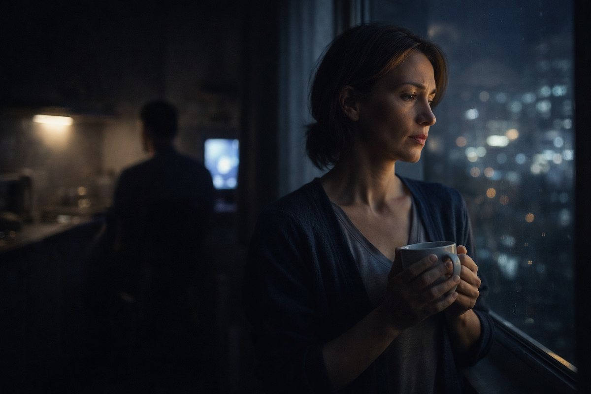 В тёмном стекле окна я поймала своё отражение. Женщина лет сорока. Аккуратная, ухоженная — и удивительно пустая. Глаза, в которых давно не задерживается свет. Лицо человека, который слишком долго старался быть удобным.