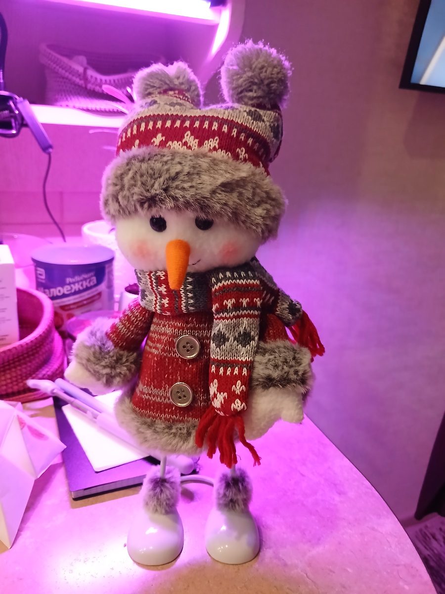 А ещё у нас дома ёлочки🎄до сих пор нет, но об этом позже. Пока нас радует единственный снеговичок подарок, он нам понравился, прижился)