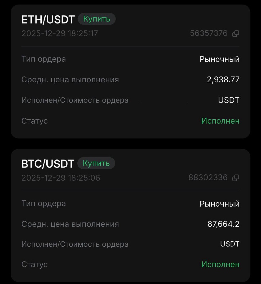 🟢 Купил BTC по 87 664 и ETH по 2 939