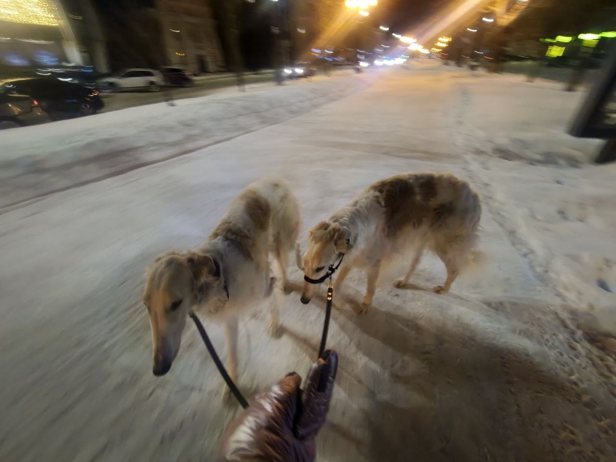 Написала для вас большой и жирный пост о характере борзой, но он кажется слишком тяжеловесный для немедленной публикации. Сейчас пост пишу прямо в редакторе телеграм, чтобы не дать себе попятную в публикации этого поста "с полей". Сегодня день примечателен тем, что к нам в прогулку в -20 подошло 2 компании. Я так полагаю, дело было в сокрушительной красоте и эффектности моих верных подопечных. В первой компании парень, как мне показалось, под лёгким градусом 😅 просил сфотографироваться с собаками. Догон был крайне против, однако Казанова был гораздо более сговорчив и даже позволил огладить себя по команде Показ. выяснилось, что парень хозяин выставочного папийона. Выразив очень коротко легкую зависть к комфорту содержания крохи, я узнала из первых уст, что легкость лишь поверхностная. С его слов – содержание такой крохи крайне дорогое удовольствие, так как из за малого веса даже бытовые грумерские манипуляции нужно делать крайне аккуратно. А еще, закупаться подставками для прав