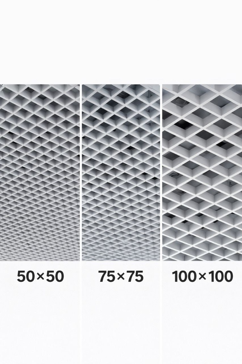 🎉 Под прошлым постом про грильято был классный вопрос: Какой размер ячейки вы выбираете и почему? 50×50, 75×75, 100×100 — что меняется по обслуживанию и виду? Ячейка это не разделение о красоте, тут про восприятие потолка, свет и то, насколько видно инженерку сверху. ✅ Что реально меняется от размера ячейки по нашему опыту 🥲 1) Визуальный шум и аккуратность 50×50 — выглядит максимально ровно и дороже, лучше маскирует то, что сверху. 75×75 — золотая середина. Обычно самый спокойный рисунок и нормальная читаемость. 100×100 — сетка крупнее, линий меньше, но инженерка сверху читается сильнее. 💡💡Все что касается света: С мелкой ячейкой свет визуально “ровнее”, с крупной — больше контраста и теней. В техпомещениях это не критично, а вот в зоне, где хотите чтобы выглядело аккуратно, уже влияет. 😮И вот главный миф: обслуживание почти не зависит от размера. Доступ всё равно через любую ячейку: датчик/трасса/коробка/вентиляция — открыл и сделал. Разница больше именно в виде. × Есл