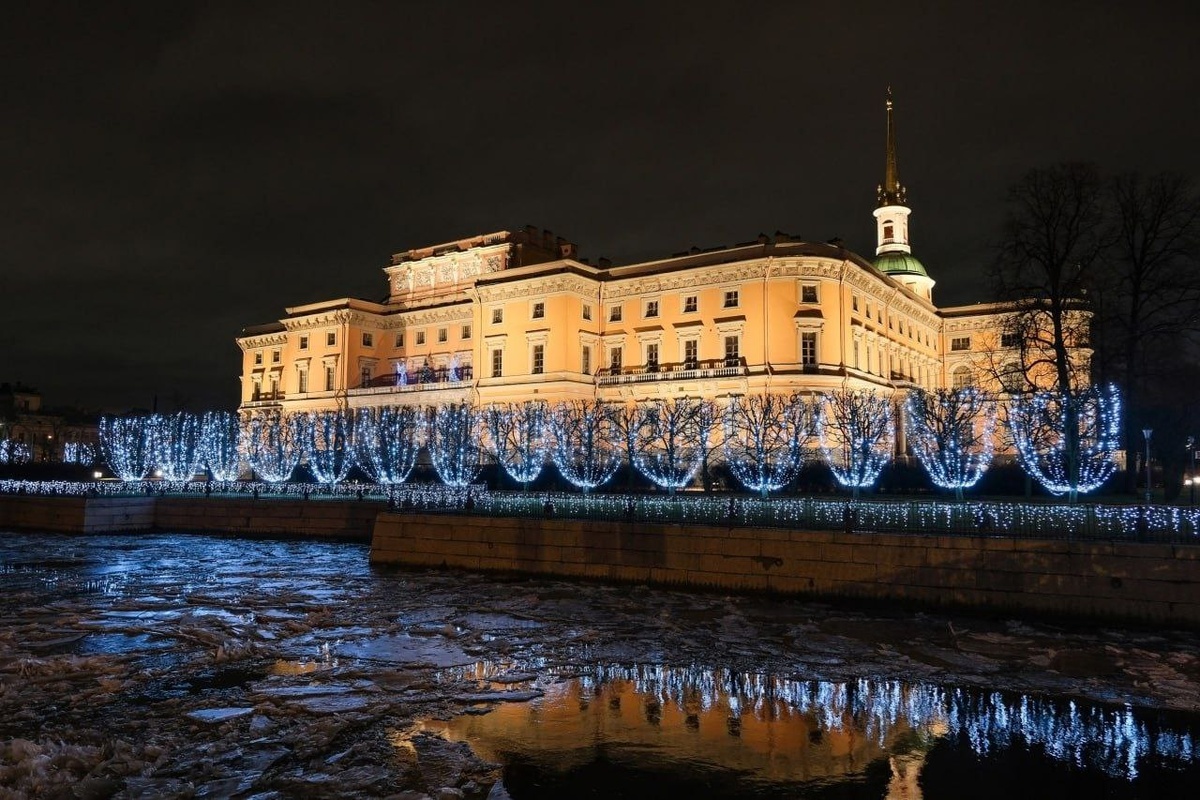 😎В Петербурге по-новогоднему засияли фасады Михайловского замка