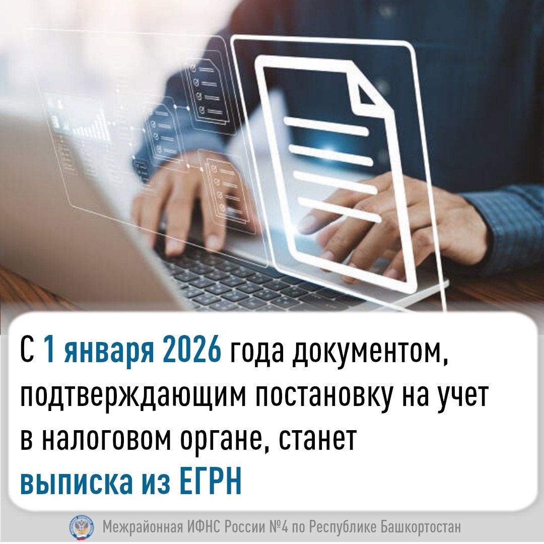 С 1 января 2026 года документом, подтверждающим постановку на учет в налоговом органе, станет выписка из ЕГРН