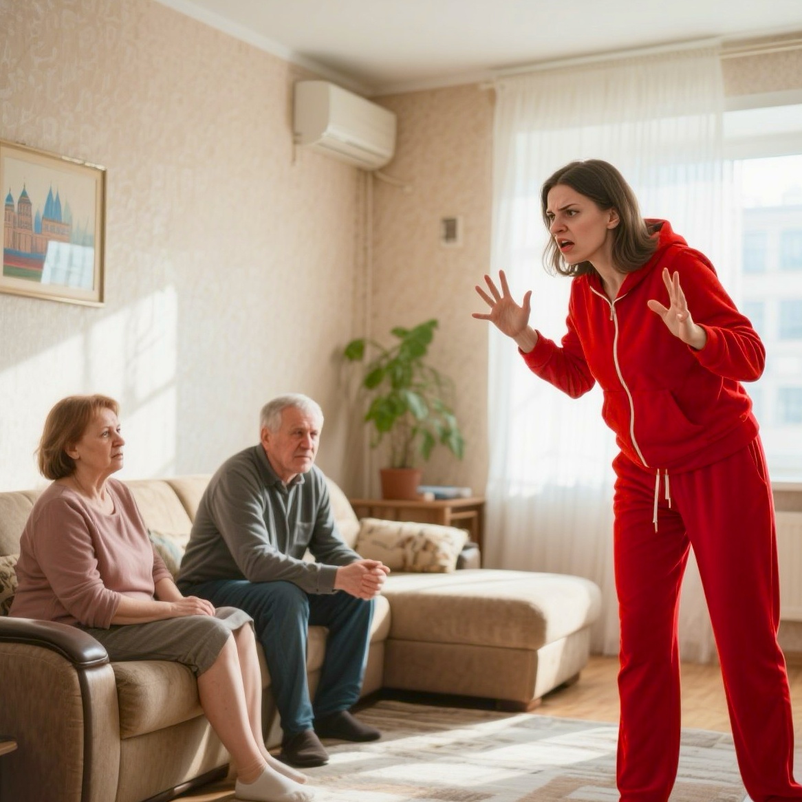 Родители прошли в комнату, неловко присели на край дивана. Марина осталась стоять, прислонившись к стене, скрестив руки на груди. Она не предложила чай. Не спросила, как дела. Просто молча ждала.