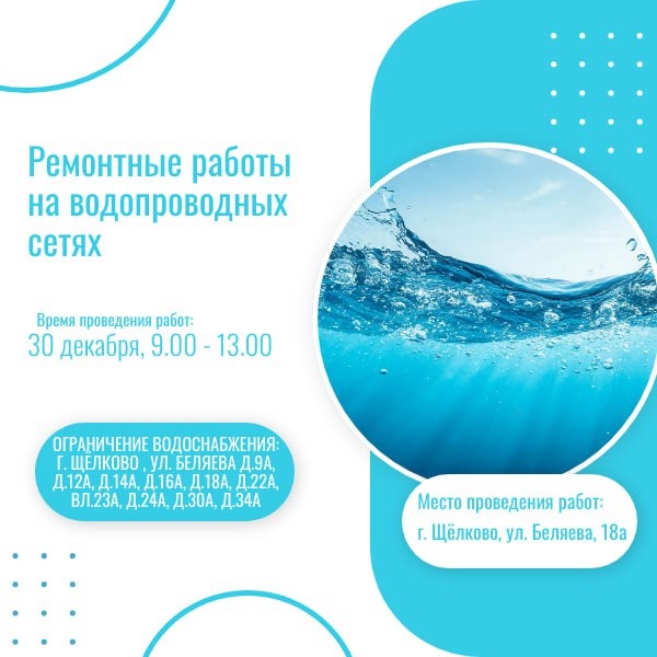 ΠΎΠ»ΠΎΠ΄Π½ΠΎΠ΅ Π²ΠΎΠ΄ΠΎΡΠ½Π°Π±ΠΆΠ΅Π½ΠΈΠ΅ 30 Π΄Π΅ΠΊΠ°Π±ΡΡ, Ρ 9:00 Π΄ΠΎ 13:00 ΠΏΠΎ Π°Π΄ΡΠ΅ΡΠ°ΠΌ: β‘οΈ ΡΠ». ΠΠ΅Π»ΡΠ΅Π²Π° Π΄.9Π°, Π΄.12Π°, Π΄.14Π°, Π΄.16Π°, Π΄.18Π°, Π΄.22Π°, Π²Π».23Π, Π΄.24Π°, Π΄.30Π°, Π΄.34Π°; β‘οΈ ΡΠ». ΠΠ΅Π»ΡΠ΅Π²Π° Π¦Π’Πβ61. ΠΡΠΈΠ½ΠΎΡΠΈΠΌ ΠΈΠ·Π²ΠΈΠ½Π΅Π½ΠΈΡ Π·Π° Π΄ΠΎΡΡΠ°Π²Π»Π΅Π½Π½ΡΠ΅ Π½Π΅ΡΠ΄ΠΎΠ±ΡΡΠ²Π°! πΠ’Π΅Π»Π΅ΡΠΎΠ½ Π°Π²Π°ΡΠΈΠΉΠ½ΠΎ-Π΄ΠΈΡΠΏΠ΅ΡΡΠ΅ΡΡΠΊΠΎΠΉ ΡΠ»ΡΠΆΠ±Ρ: 8 496 562-11-72. ΠΠΎΠ΄ΠΏΠΈΡΠ°ΡΡΡΡ π¦ΠΠ°ΠΊΠ°Π½ΡΠΈΠΈ π¦ΠΠΈΡΠ½ΡΠΉ ΠΊΠ°Π±ΠΈΠ½Π΅Ρ π¦Π§Π°Ρ-Π±ΠΎΡ