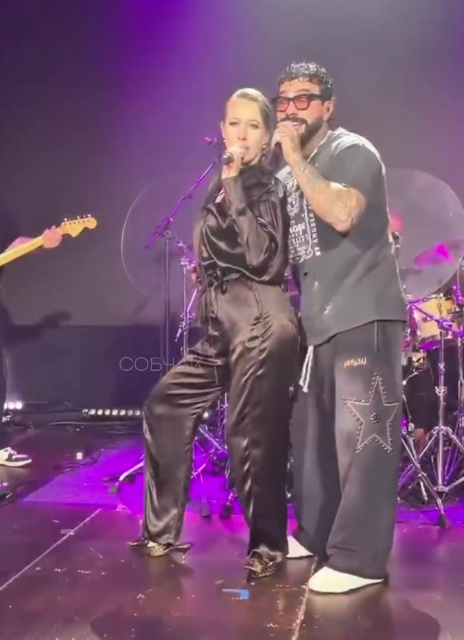 Тимати и Ксения Собчак оказались на одной сцене и исполнили совместный хит «Потанцуй», который впервые презентовали почти 20 лет назад — в 2006 году. Тимати накануне выступил на корпоративе в Воронеже, а Собчак была ведущей мероприятия. Рэпер позвал на сцену коллегу и предложил ей вместе исполнить популярную в нулевых песню. «Сейчас произойдет смертельный номер, который не происходил с начала нулевых. Я попрошу подняться на сцену ведущую этого вечера — Ксению Анатольевну — под громкие аплодисменты. Эксклюзив. Здесь. Сегодня. В Воронеже», — сообщил Тимати. Собчак согласилась исполнить его желание. Она подпевала артисту и устроила зажигательные танцы на сцене. Позже в своих соцсетях ведущая поделилась кадрами, снятыми на корпоративе. «Вероятность того, что этот дуэт произойдет, крайне мала, но не равна нулю. Как я могла оставить вас без подарка под Новый год, любимый зритель», — прокомментировала Собчак. В марте 2025 года телеведущая и рэпер зажигали под свой хит в одном из ресторанов на