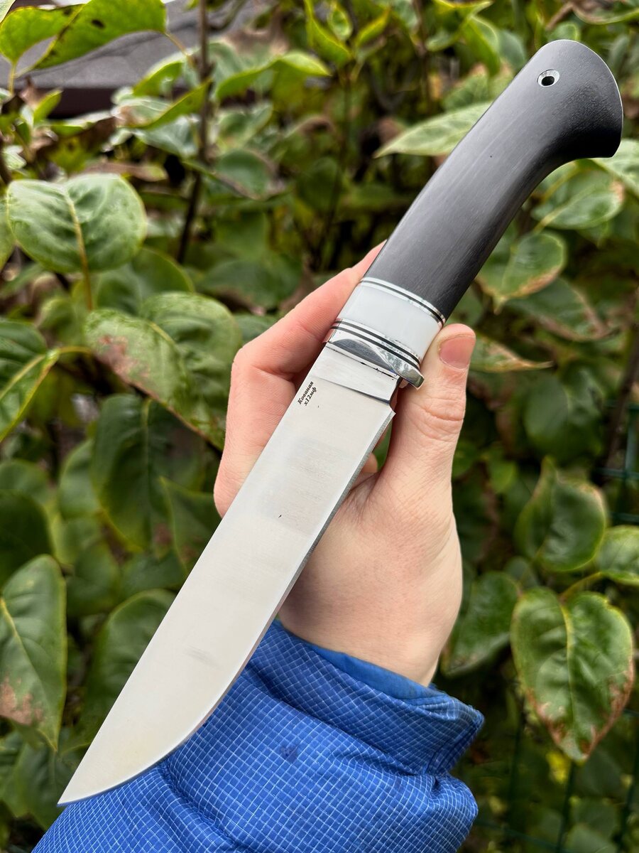 Разделочный нож "Засапожный" — выбор ценителей настоящего качества. 🔪 Материал клинка: кованая сталь Х12МФ — одна из лучших отечественных инструментальных сталей. ✨ Преимущества: - Высокая твёрдость (HRC 61-62) — клинок долго держит заточку, не тупится даже при активной работе. - Агрессивный рез — легко справляется с разделкой, строганием и точными манипуляциями. - Минимум ухода — идеален для охоты, рыбалки и походов. Рукоять: наборной чёрный граб — надёжно лежит в руке и отлично смотрится. 💰 Цена: ~9 750 ₽~ 8.440₽ 🛡️ Пожизненная гарантия — ручная работа, контроль на каждом этапе. 🔨 Опционально: кожаные формованные ножны из растительного дубления (+8 000 ₽) — для солидного подарка или личного пользования. Заказать просто: ✉️ Пишите: [@Nazarklinokbot](https://t.me/Nazarklinokbot) 📞 WhatsApp: [ +7 910 134-38-31](https://wa.me/79101343831) #ножи #ручнаяработа #X12MF #охота #КузницаНазарова #подарок #туризм #Засапожный