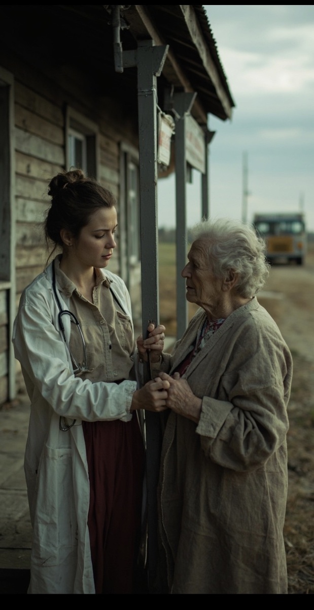 На крыльце амбулатории стояла девушка в выцветшем халате, с резинками на запястьях, чтобы рукава не спадали, с усталым, но удивительно мягким взглядом. Волосы её были собраны в небрежный пучок, под глазами — тени недосыпа, а на руках — следы от перчаток и антисептиков.