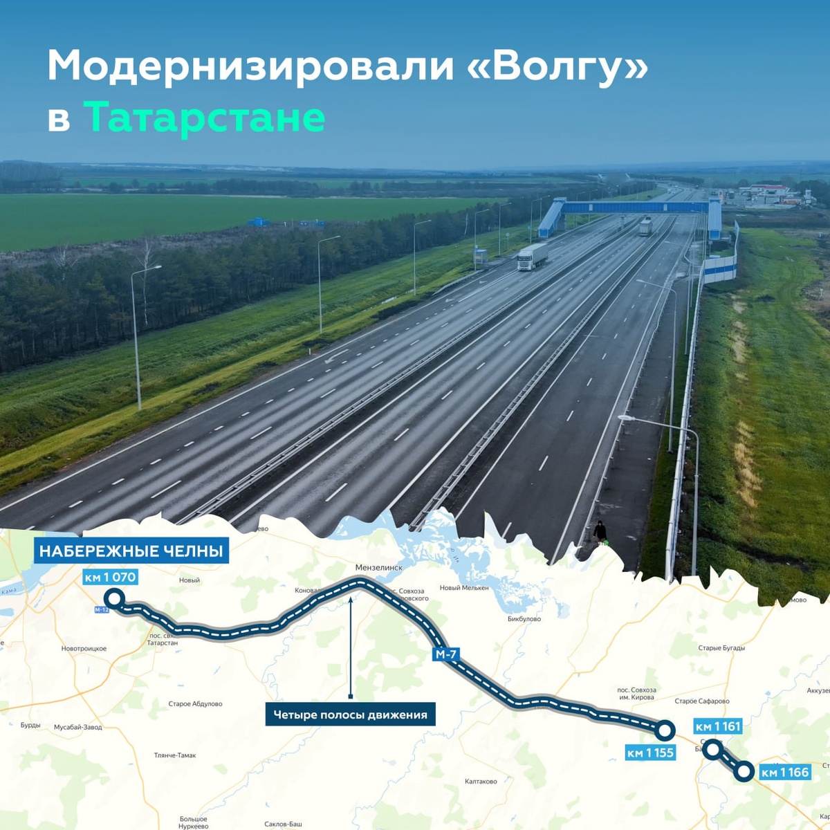 Завершили дорожные работы от Набережных Челнов до границы с Башкортостаном. Так, после модернизации трассы с 1 070-го по 1 166-й км проезжая часть стала ещё безопаснее для движения — сегодня водители едут по двум полосам в каждом направлении. Рассказываем о результатах: ▶️возвели 10 транспортных развязок и путепроводов ▶️построили и реконструировали пять мостов ▶️смонтировали линии освещения и барьерное ограждение, остановки, надземные переходы для пешеходов Сейчас всё основное направление «Волги» в границах Татарстана — четырёх- и шестиполосное. Интересный факт: в пиковые периоды на стройплощадке было задействовано 1 500 человек, 500 единиц техники, четыре асфальтобетонных и два бетонных завода. И всё для того, чтобы сделать М-7 удобной для автомобилистов 😎 🔷Росавтодор в MAX #росавтодор_реконструкция|#идж