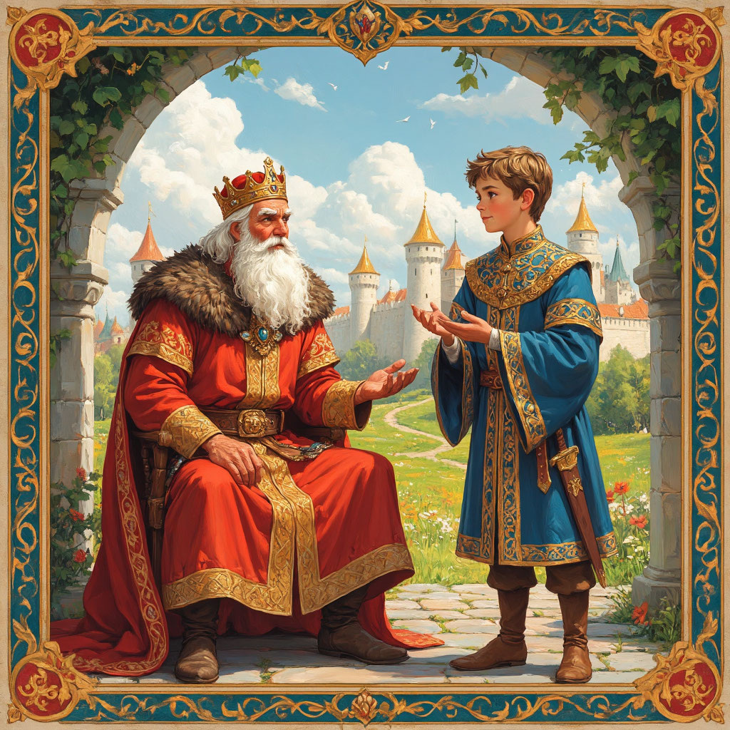 В тридевятом царстве, в тридесятом государстве жил‑был царь Берендей. И был у него сын — Иван‑царевич, удалой да смелый, умом острым да сердцем горячим. С малых лет твердил ему царь: «Будь горд, Иван, да не высокомерен; уважай людей, да не теряй достоинства». Но царевич лишь усмехался: «Я — царский сын! Мне ли у чужих совета просить?» Как‑то раз объявился в царстве Змей Горыныч о трёх головах. Огнём палит, деревни жжёт, дань непомерную требует. Собрал Иван дружину и молвил: — Я сам с чудищем справлюсь! Вы — лишь помеха. Взял меч булатный, надел доспехи златые и отправился в логово Змея. А воины ему: «Иван‑царевич, дай мы план составим, силы распределим!» — «Не надобно! Я один всех победю!» Сразился Иван со Змеем. Бился день, бился другой — а Горыныч лишь смеётся: «Юнец, ты силён, да глуп! Один в поле не воин!» И опалил царевича огнём, да так, что едва живой домой приполз. Лежит Иван на печи, раны зализывает. Вдруг — стук в окно. Входит старец седобородый, в рубище, но с глазами ясными