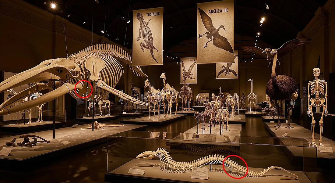 Бёдра китов, ноги змей, хвосты людей, рыбы с локтями, птицы с зубами, лошади с «призрачными» пальцами, лягушки с костяными ножами — это уже найденные «промежуточные звенья», выставленные в музеях и учебниках.