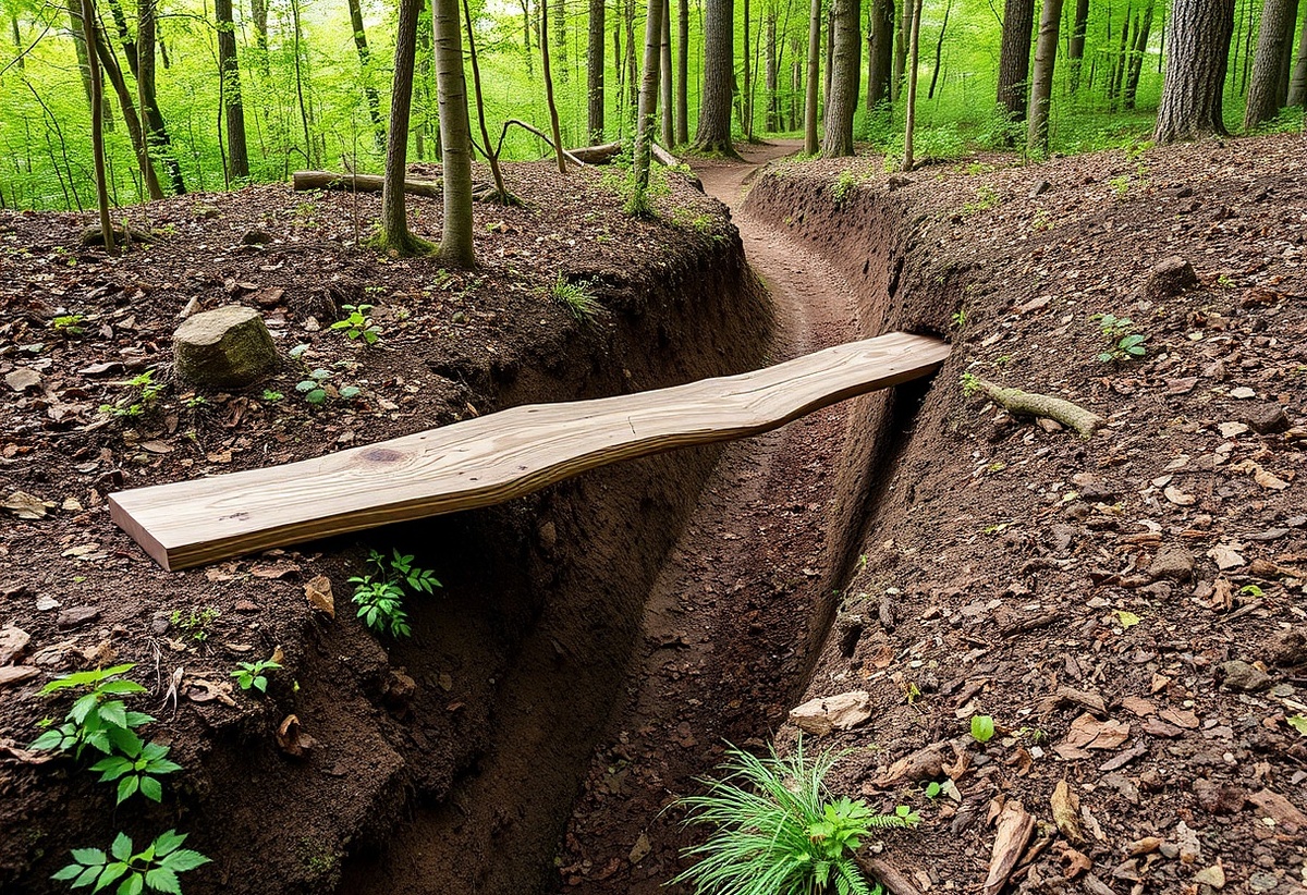 На пути к дому бабушки напрямую через лесок и училище коммунальщики вырыли грандиозную траншею, производя капитальный ремонт теплотрассы. Расстояние по обходной дороге возросло в три раза, а ремонтные работы, как водится, были приостановлены до наступления холодов. Отправляясь в очередной раз на бабушкины блины и пирожки, ради экономии времени я уговорил Машу пройти через траншею – ну должны же быть какие-то мостки. Завидев яму издалека, дочка начала хныкать и предлагать вернуться. Однако тратить полчаса на возвращение не входило в мои планы, и я, стараясь выглядеть уверенно, убеждал её: «Мы эту ямку легко перепрыгнем!». Игнорируя причитания дочери: «Не надо прыгать!», около края траншеи взял её на руки и, заприметив невдалеке кирпичный выступ, на котором лежала доска, ступил на него. Маша закрыла глаза, и крепко обхватила мою шею. Доска оказалась прочной и, немного балансируя, мы успешно преодолели препятствие. - Ну вот! А ты боялась, - довольный собой, произнёс я. Маша тяжело выдох