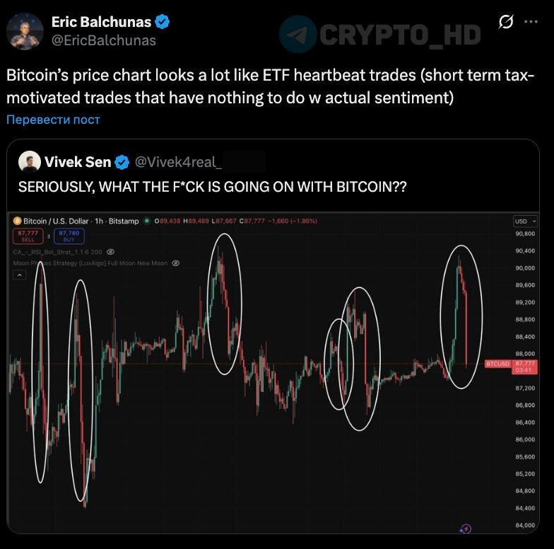 π€ Eric Balchunas: ΠΠΎΡΠ»Π΅Π΄Π½ΠΈΠ΅ ΡΠ΅Π½ΠΎΠ²ΡΠ΅ ΠΊΠΎΠ»Π΅Π±Π°Π½ΠΈΠ΅ BTC ΠΎΠ±ΡΡΠ»ΠΎΠ²Π»Π΅Π½Ρ Β«Π½Π°Π»ΠΎΠ³ΠΎΠ²ΡΠΌΠΈ ΡΠ΄Π΅Π»ΠΊΠ°ΠΌΠΈΒ», Π° Π½Π΅ ΡΠ΅Π°Π»ΡΠ½ΡΠΌΠΈ ΡΡΠ½ΠΎΡΠ½ΡΠΌΠΈ Π½Π°ΡΡΡΠΎΠ΅Π½ΠΈΡΠΌΠΈ
