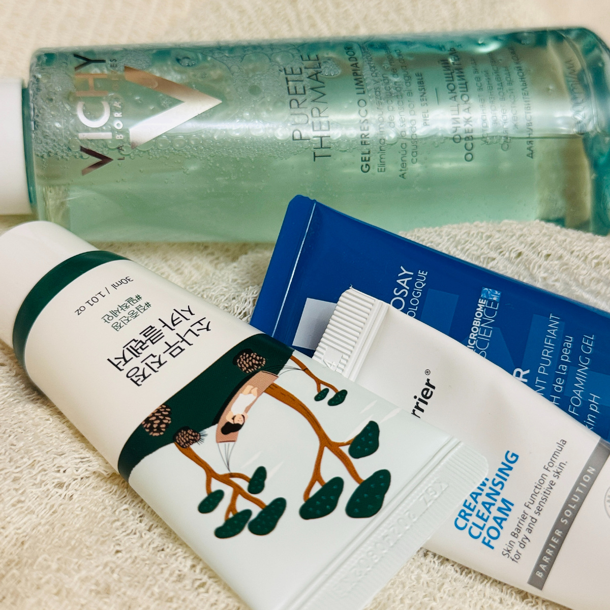 Казалось бы, средства для умывания находятся на нашем лице считанные минуты, а играют очень важную роль во всем процессе очищения кожи. Сегодня расскажу о тех любимцах, которые уже давно со мной и пока не требуют замены. В моей подборке не будет пенок (именно с густой пеной) для умывания. Знаю, что этот формат бережнее относится к коже, но у меня фобия. Прошу прощения. 1. Vichy Purete Thermale Гель очищающий освежающий 200 мл Для утреннего умывания идеален. Приятно пахнет, не стягивает, хорошо пенится в мягкую "необъемную" кремообразную пену, хорошо распределяется. Также прекрасно смывается, не оставляет на лице никаких неприятных ощущений и желания повторно умыться. Фразу "освежающий" маркетологи добавили в названия не красоты ради, гель действительно освежает. Отчасти, это заслуга аромата. Если кто-то когда-то решит его поменять - я за себя не ручаюсь. С остатками макияжа и нанесенным гидрофильным маслом скорее всего не справится (давно не крашусь плотно, не проверить). Поэтому испо