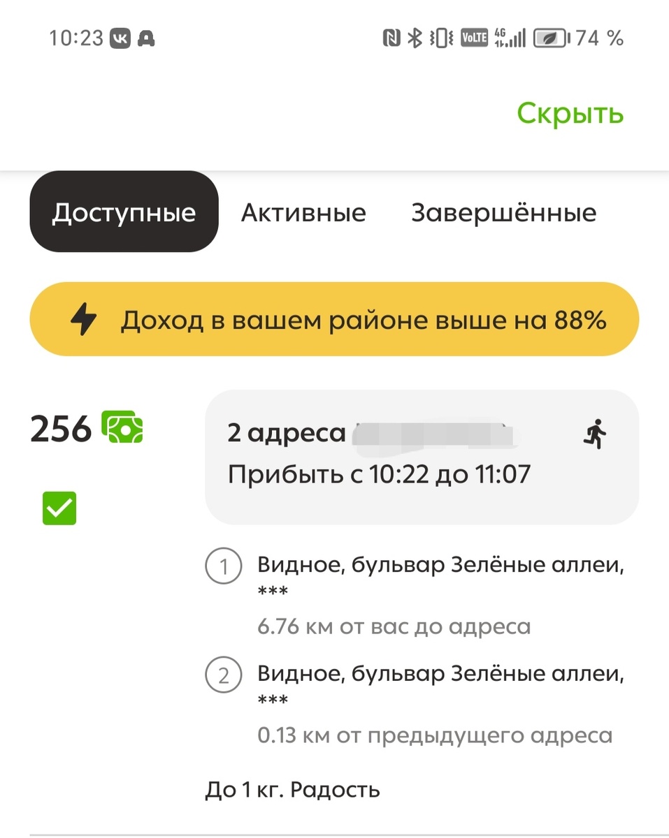 Но моя совесть не проснулась, и я продолжила пропускать хорошие заказы дальше, читая рецепты салатов аж до 11:18, взяв очень даже легенький денежный заказик за 1500 рублей.