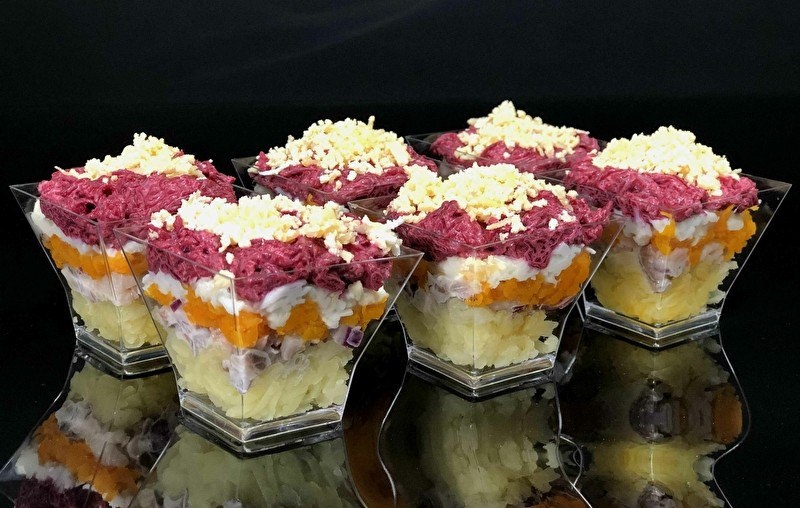 🥗 "Шуба" в новом формате — порционная! Слои в стаканах/креманках: Сельдь кубиками Картофель тёртый Морковь тёртая Свёкла тёртая Яйцо + майонез + зелень ✨ Фишка: Красиво, удобно брать, не разваливается! 🎊 Гости оценят презентацию! https://t.me/dachstil