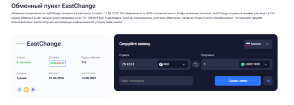 EastChange - Криптообменник №1 в России