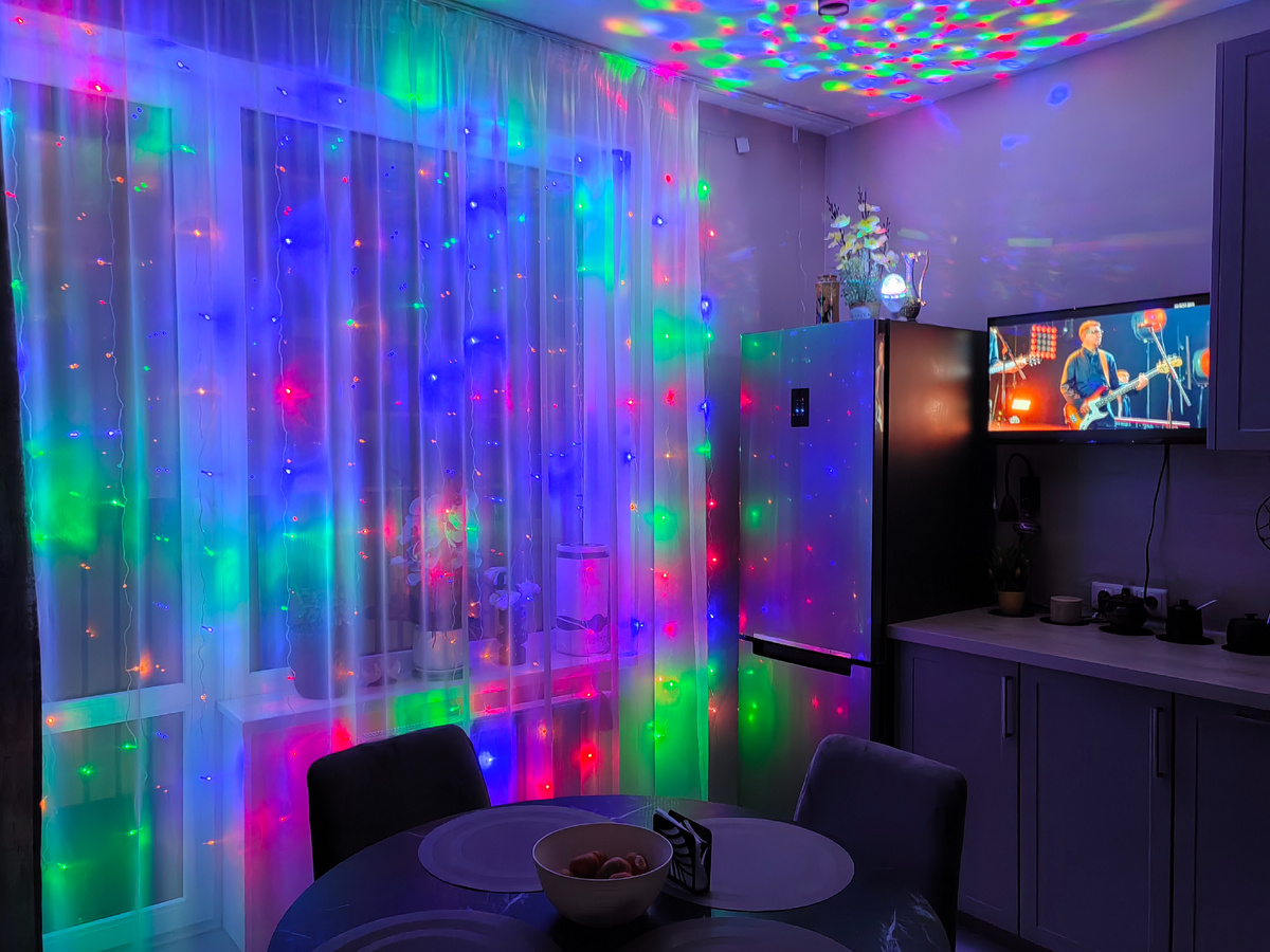 В этом году мудрая Зина решила добавить красок в жизнь😅 , повесить гирлянды не только в комнате, но и на кухне.
