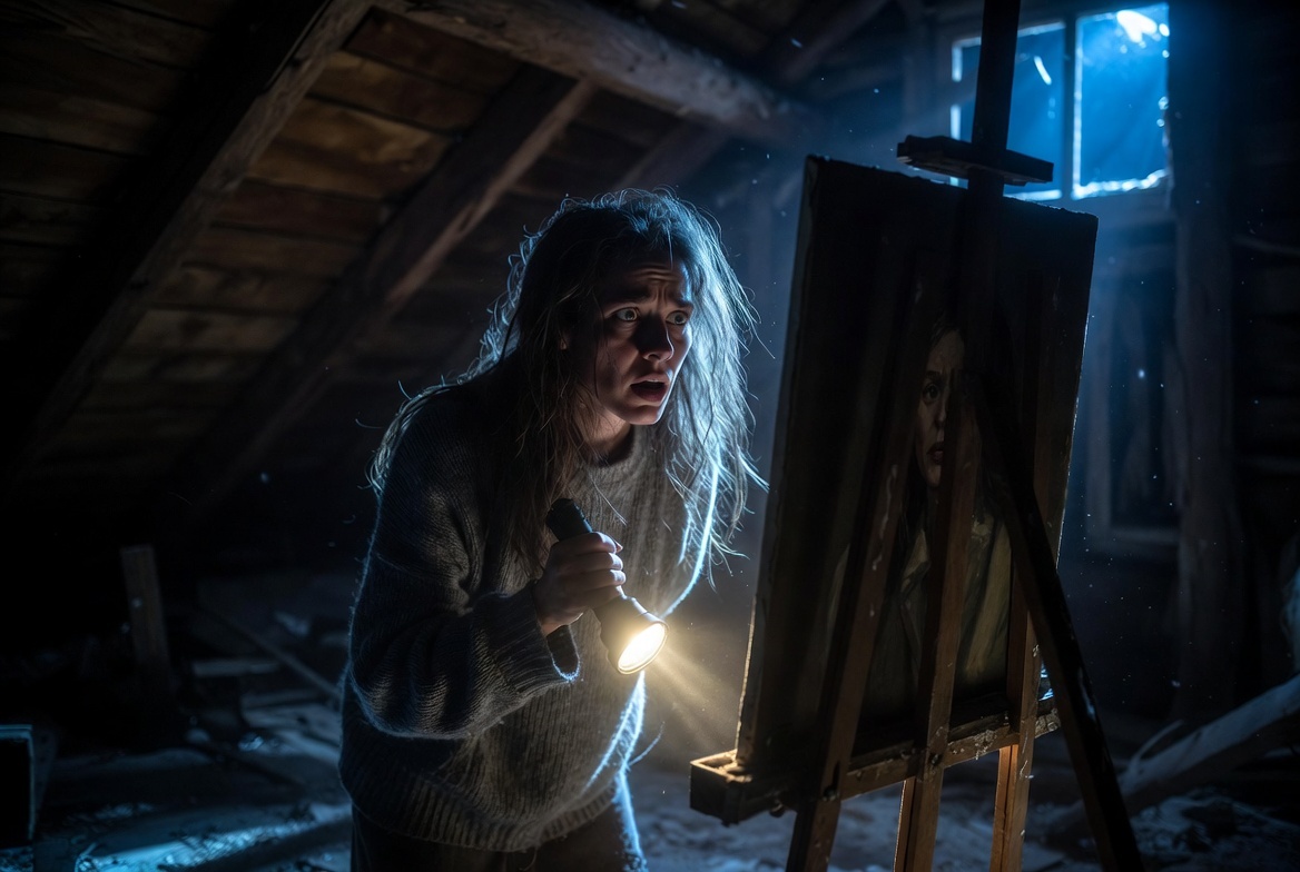 Дрожащей рукой я посветила на последний объект. Мольберт, накрытый плотной тканью. Инстинкт самосохранения орал: «Беги отсюда, дура!». Но пальцы сами потянулись к пыльной тряпке. Рывок.