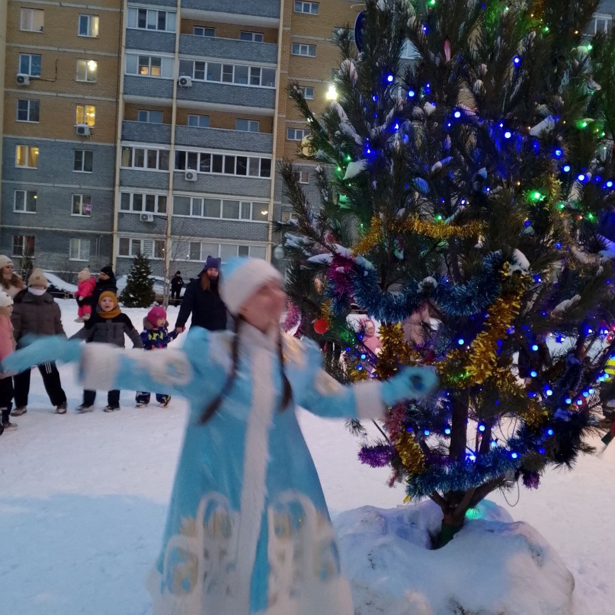29 декабря двор дома на улице Ладожской 149 преобразился в волшебное место, там было организовано увлекательное новогоднее представление с