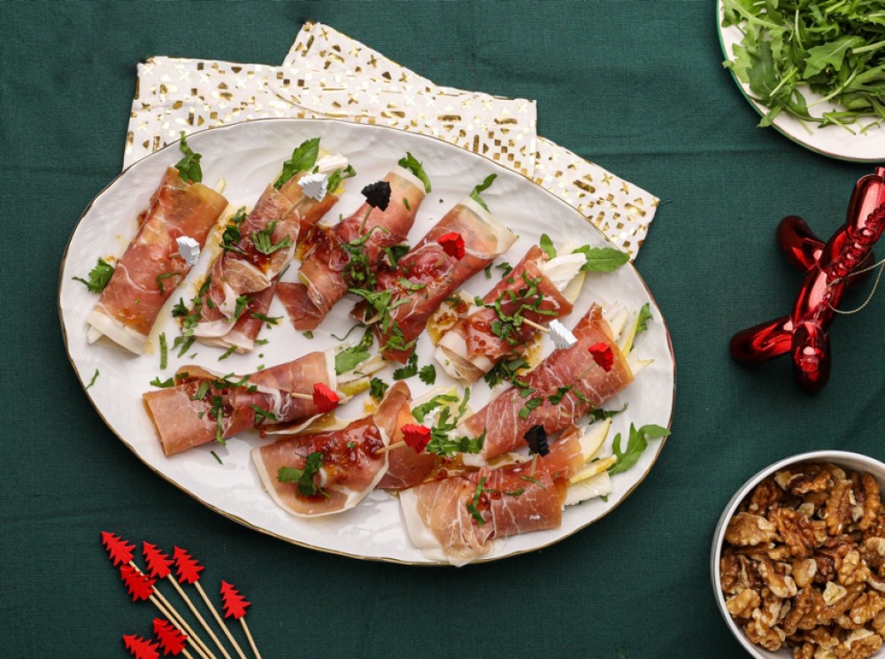 Быстрое и простое блюдо - оригинальная закуска для вашего новогоднего стола. Рулетики из прошутто с грушей и козьим сыром - идеальное сочетание.