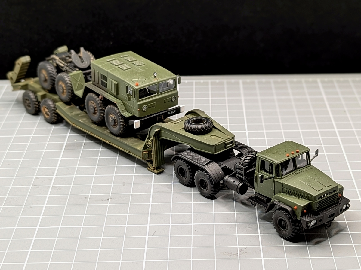 Модель тягача КрАЗ-260В в масштабе 1:87 собрана проектом "KOLTmodels декали и ФТД для моделей 1/87" под заказ в единичном экземпляре. Модель собрана из старого КИТа украинского производства, включая смоляную кабину КрАЗ-260 и шасси от КрАЗ-255. Шасси необходимо было резать и пилить, при этом от старости пластик крошился. Кабина же была отлита кустарным способом, достаточно плохо стыковалась с собственным интерьером и шасси. Колеса модели "восьмерят", так как каждое висит на собственном весьма ломком штырьке. Правда, шины в КИТе резиновые, что впрочем оказалось сомнительным плюсом, выглядели они далеко не красиво и их пришлось покрасить. В общем, по мнению моделиста, собирать модель из данного КИТа весьма сомнительное удовольствие. Качество старых КИТов не выдерживает никакой критики, до современных наборов для самостоятельной сборки, полученных путем 3д печати им очень далеко, от сборки современных КИТов моделист получает удовольствие, а здесь больше мучений и раздражения. Канал "ПАНТО