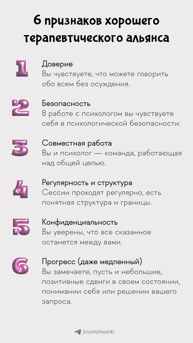 Маркеры качественных, доверительных и продуктивных отношений с психологом. Терапевтический альянс — главный прогностический фактор успеха терапии, даже более важный, чем выбранная методика.