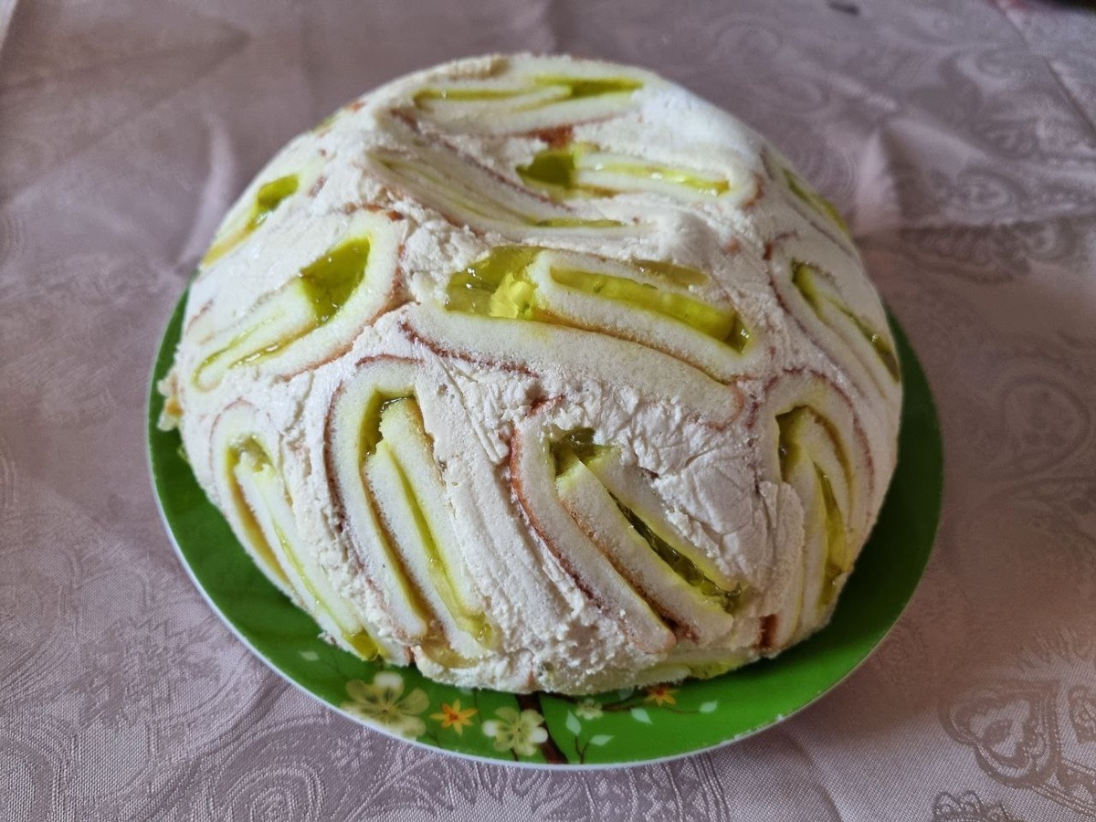 Продукты на 1 форму: 40 г растопленного сливочного масла или маргарина По 4 желтка и белка Цедра 1/2 лимона 1 щепотка соли По 50 г крахмала и муки 100 г яблочного или айвового желе 250 г сливочного творога Сок 1 лимона 5 ст.л. молока 500 г яблочного мусса (детское яблочное пюре тоже подойдет) 4 ст.л. яблочного шнапса или яблочного сока 8 пластинок желатина 375 г сливок 150-170 г сахара сахар для посыпки Время приготовления: 4 часа, рабочее время - 1 час. Нагреть духовку до 200°С. Миксером взбить желтки с 60 г сахара и цедрой в плотный крем. Белки взбить с солью в крутую пену. Переложить на крем из желтков. Просеять муку и крахмал на массу и тщательно перемешать. Влить жидкое, охлажденное масло. Противень выложить бумагой для выпечки. Равномерно нанести на него лопаткой тесто. Выпекать в духовке на среднем уровне 10-12 минут до золотистого цвета. Корж сразу же переложить на посыпанное сахаром полотенце, бумагу снять. Корж смазать желе. Затем с помощью полотенца скатать в рулет и ос
