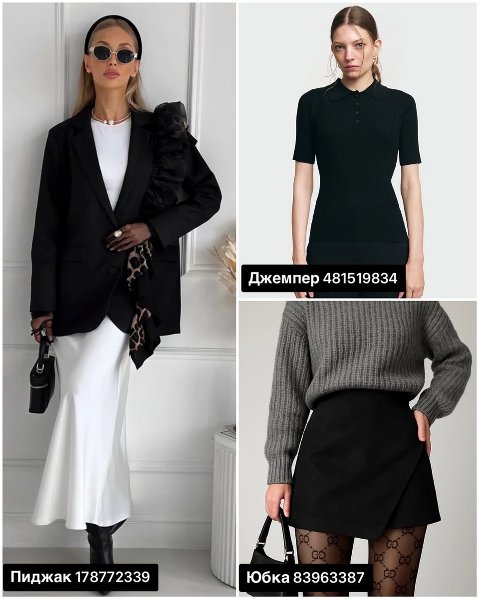 Эти находки хороши тем, что каждая вещь — не «однодневка», а полноценный инструмент стиля. Чёрный пиджак арт. 178772339 даёт эффектный статус и сразу поднимает любой образ. Джемпер поло арт. 481519834 — умная база, которая всегда выглядит аккуратно. Юбка на запах арт. 83963387 добавляет женственности и динамики. Светлая блузка с баской арт. 492194698 делает фигуру собранной и изящной. Белая фактурная блузка арт. 387480511 создаёт праздничное настроение, а шоколадная арт. 531419501 добавляет тепла и «дорогого» оттенка в гардероб.