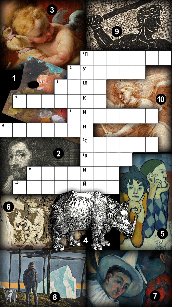 Предлагаем вам отдохнуть от отдыха и сыграть с нами. Перед вами — кроссворд, в котором все слова связаны с коллекцией ГМИИ им. А.С. Пушкина. Мы загадали имена художников, некоторые термины и названия предметов. Сохраняйте себе, заполняйте. Проверить ответы можно в боте: @PushkinStateMuseumofFineArts_bot. Заполненный кроссворд опубликуем позже в комментариях. Удачи вам! Вопросы: 1. Этот предмет, принадлежавший Анри Матиссу, можно увидеть в постоянной экспозиции Галереи искусства стран Европы и Америки XIX–XX веков. 2. Фламандский живописец, один из крупнейших представителей стиля барокко. 3. Французский художник, яркий представитель стиля рококо. 4. Произведений этого вида искусства больше всего в собрании музея. 5. Автор картины «Девочка на шаре». 6. Разновидность шпалеры. 7. Этого любимого художника Ивана Морозова называли Отшельником из Экса. 8. Художник-путешественник, известный своими северными пейзажами. Его работы были показаны на выставке «Курс на Север». 9. Техника исполнения м