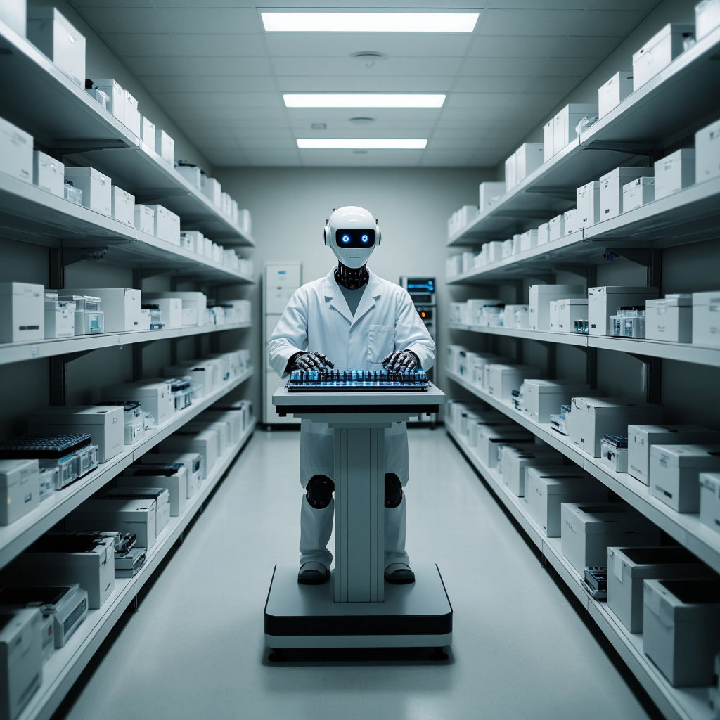 В лаборатории «Кибернетикс-7» монотонно жужжали сервоприводы. Р- 427 медленно перемещался между стеллажами, проверяя параметры образцов. Его оптические сенсоры фиксировали каждое отклонение, а в центральном процессоре без эмоций выстраивались цепочки данных.