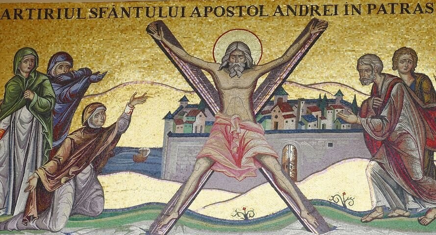 ? В свое последнее путешествие апостол Андрей отправляется в Грецию, где посещает с миссией Филиппы и Фессалоники. В Патры апостол прибывает уже в почтенном возрасте – около пятидесяти лет - и решает остаться здесь навсегда. Он проведет в этом городе долгие годы, прежде чем принять мученическую смерть. Историческая новелла третьего века "Деяния апостола Андрея" рассказывает о том, как Андрей исцеляет жену проконсула Патр Эгеата, и она сразу же принимает христианство. Но сам губернатор не хочет и слышать о новой религии и бросает Андрея в тюрьму. Тюремщиков апостола приходится часто менять - едва познакомившись с узником, все они обращаются в его веру. В конце концов, 28 ноября 69 года проконсул отдает приказ распять Андрея. И чтобы казнь была помучительней, пострашнее, он привязывает его к кресту. Возмущённый народ хочет освободить Андрея. Но тот говорит: «Неразумные, разве этому я вас учил? Я уже иду к самому Богу, а вы меня останавливаете». И вися на кресте, он проповедует. А предан
