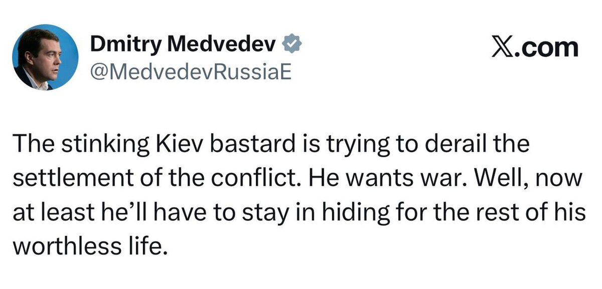 Он хочет войны. Что ж, теперь, по крайней мере, ему придется скрываться до конца своей никчемной жизни», — Дмитрий Медведев о атаке на госрезиденцию Президента РФ. 🌐 За Русский Мир©Резервный📣Наш Чат✔️Подпишись‼️