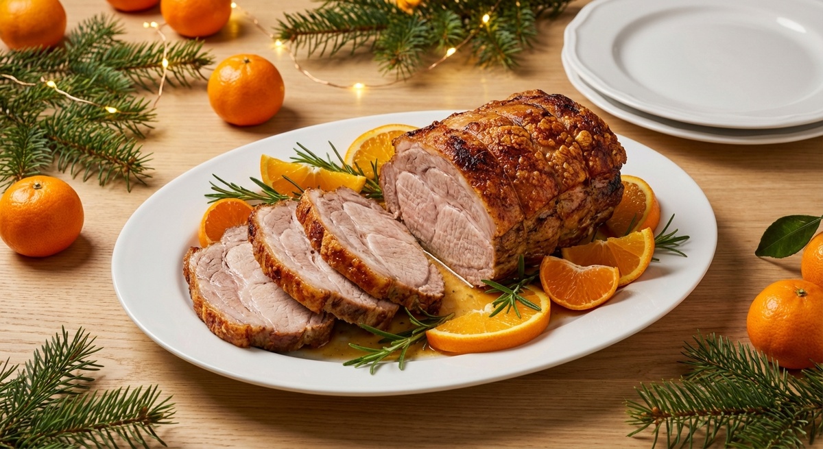 - Добавь вокруг дольки апельсина/мандаринов, веточки розмарина, немного зелени.