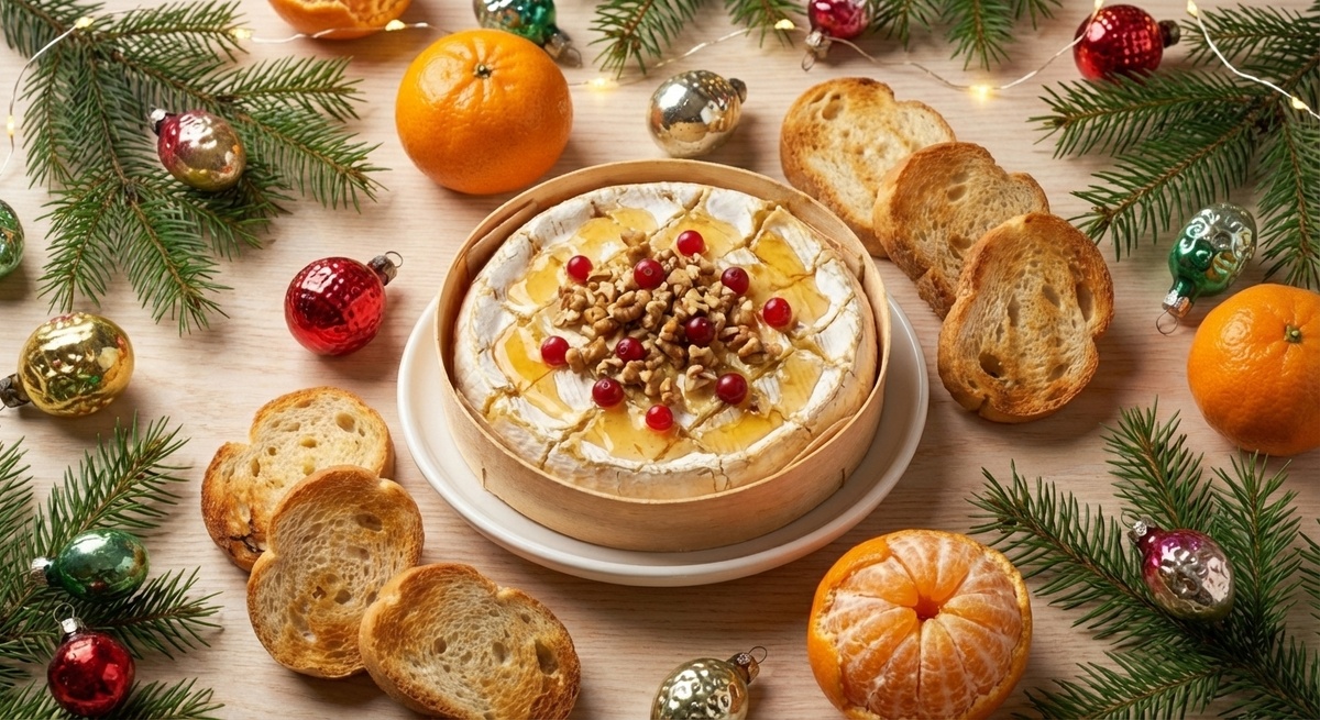 Это тот случай, когда: Запечённый камамбер: Для подачи: Важно: не закапывай сыр под огромной горой всего. Лучше чуть-чуть орехов и ягод сверху, остальное — добавить уже при подаче вокруг. Не передерживай: если забудешь и запечёшь слишком долго, сыр может «убеждать» по пергаменту и потерять часть текстуры. Немного потёкший бортик — норм, но цель — мягкая «лава» внутри. Параллельно с сыром (или сразу после): Можно и просто подать свежие ломтики, но хрустящий слегка подсушенный багет — гораздо ближе к «кафе». Лучше всего подать на доске или большой тарелке: Как есть: Это очень «инстаграмное» и одновременно домашнее блюдо — отлично работает на фото и по ощущениям «новогоднего кафе дома». 1. Если не любишь сладкое в закусках 2. Если нет камамбера Подойдёт круг бри примерно такого же размера.