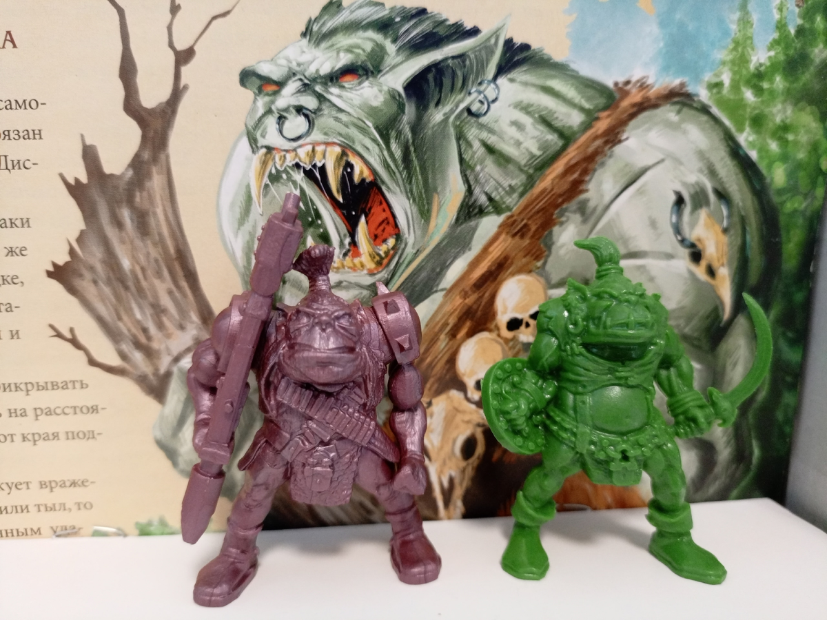Смотрим на набор из серии "Битвы Fantasy" Ave любители солдатиков! Девяносто третий выпуск данной рубрики в эфире! Потихоньку-понемногу, но мы подходим к красивой круглой цифре "100". Возможно даже мы ее этой зимой увидим в заголовке ;) Сегодня Богуслав Рыбин показывает свои наборы из коллекции. Фотографии - Богуслав Рыбин. Доброго здравия. На обзоре солдатики от компании «Технолог» отряд орков с двумя подвижными руками из «бригады "Гулрог". Которая заменила собой «Бригаду "Гуглук"» в наборе «Битва за Маяк» после претензии компании "Games workshop". Более не в каких наборах не продавалась, благо сейчас появилась возможность покупки на маркетплейсах, без необходимости покупать огромный набор. Материал - полителен. Первым идёт недовольный командир с бакенбардами, волосы завязал в пучок. Одет в безрукавку. Пояс закреплён замком(что они вместе навсегда, против недоброжелательных эльфов), его поддерживают подтяжки с кольцом на спине и перекрещены спереди с закреплённой пулемётной лентой.