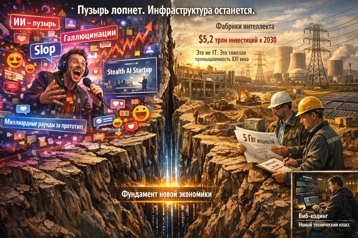 Пузырь лопнет. Акции упадут. Многие стартапы умрут. Но останется скелет новой индустрии — как после доткомов остался интернет. И тот, кто в 2026-2027 годах научится эффективно работать на этой новой инфраструктуре, будет управлять мировой экономикой следующие 50 лет.