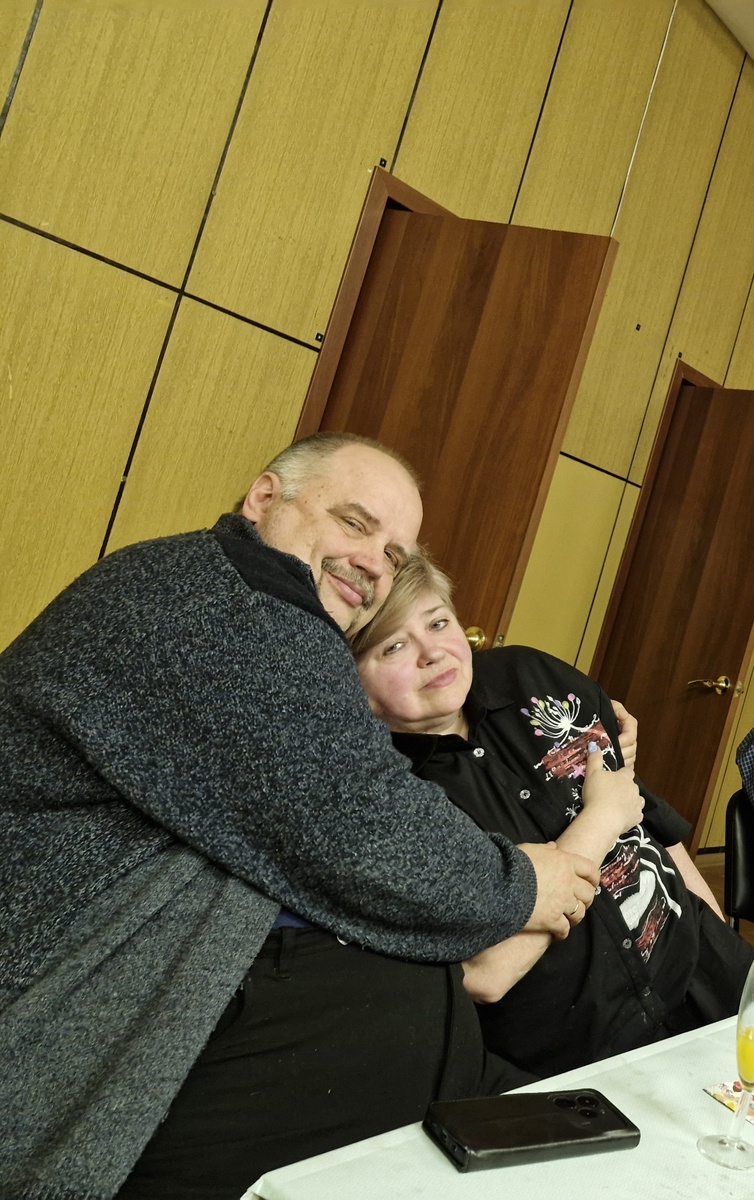 Я хотела пофотографировать. Но спохватилась, когда надо было уже уходить. Вот только мы в обнимку за столом.