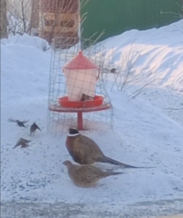 Хитрую тактику птиц у кормушки наблюдал ученый у себя во дворе. Амурский эколог Антон Сасин поделился наблюдениями за поведением птиц у кормушки, установленной во дворе. Он обратил внимание на тактику, которую избрали самцы фазанов. Выводами ученый поделился с подписчиками своего телеграм-канала. Как пояснил Антон Сасин, несколько дней назад шум и суета вокруг кормушки привлекла фазанов. Эти птицы более осторожны, чем воробьи, синицы и сороки. «Небольшая группа из двух самцов и примерно 5-6 самок обосновалась за баней, в кустах смородины, где их никто не видит. Самцы начали по утрам отправлять самок на разведку к кормушке. Это продолжалось в течение 2-3 дней», - рассказал ученый. Так самки постепенно проводили «рекогносцировку» во дворе, беря все риски на себя. И лишь убедившись в безопасности, к кормушке наконец приблизились самцы. Антон Сасин пояснил, что такое поведение отражает устоявшуюся в природе стратегию, вызванную тем, что самцов среди птиц мало. Скриншот видео t.me/amur_bird